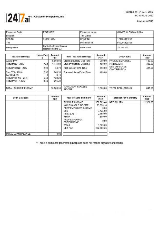 24 7 Customer Philippines payslip template in Word and PDF formats.pdf, 1 download template file