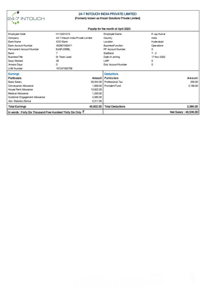 Be the first to review “24 7 Intouch India payslip template in Word and PDF formats.pdf, 1 download template file”