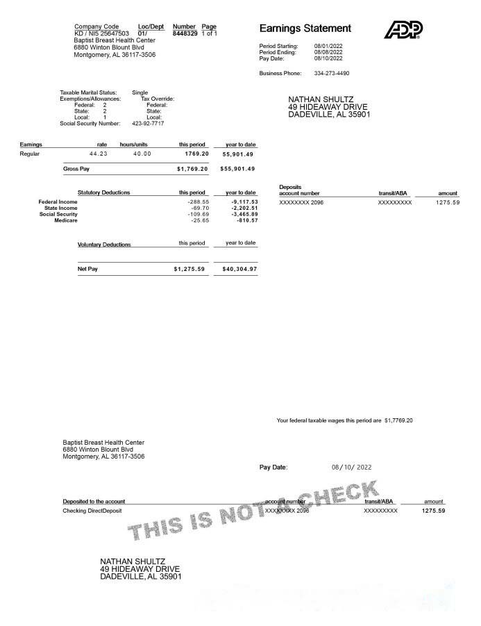 ADP Earnings Statement download template file