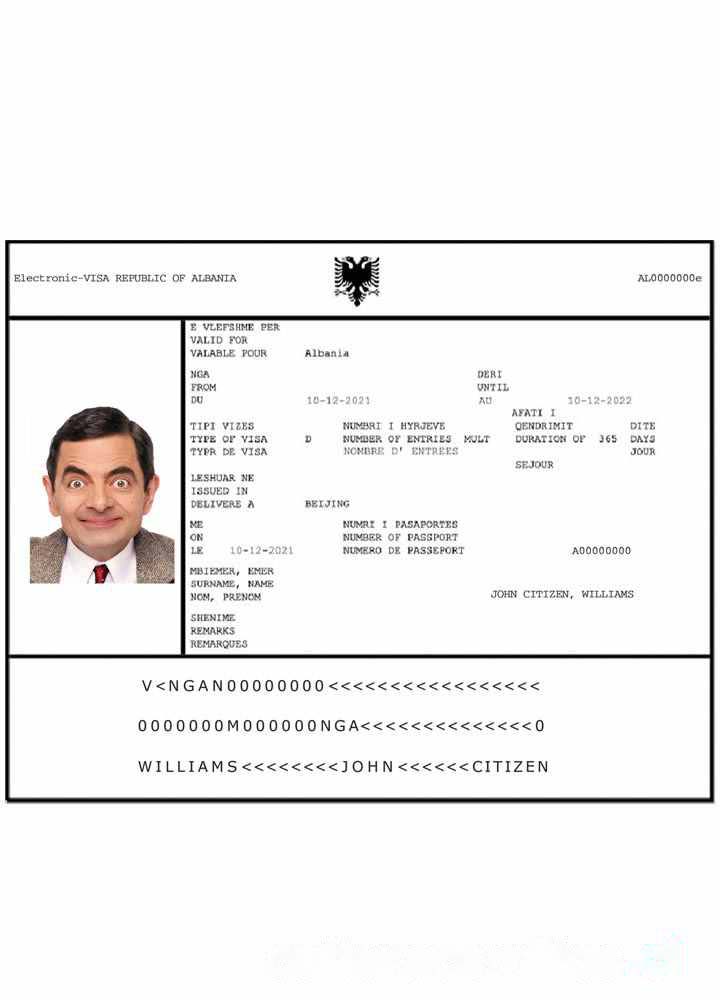 ALBANIA e visa download template file