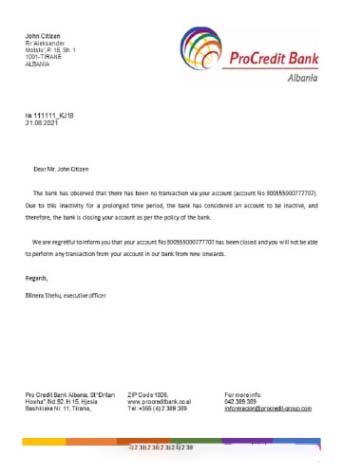 Albania Procredit closure reference download template file