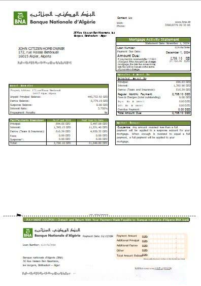 Algeria Banque nationale d’Algerie (BNA) bank mortgage statement scr download template file