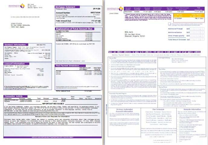 Algeria BDL bank mortgage statement, 3 pages 1 2 scr download template file