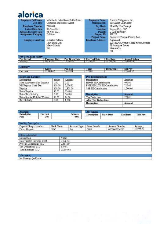 ALLSEC Building technologies payslip in Word and PDF formats download template file
