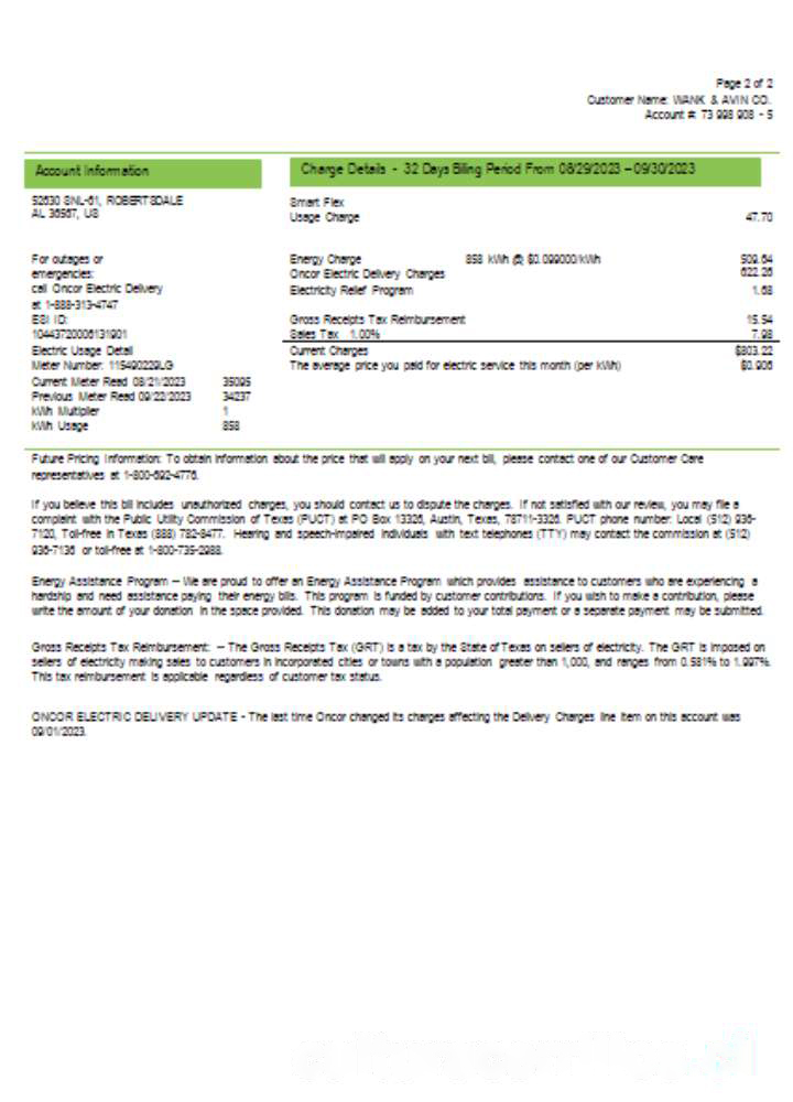 Ameren Missouri electricity utility business bill, , page 2, SCR download template file