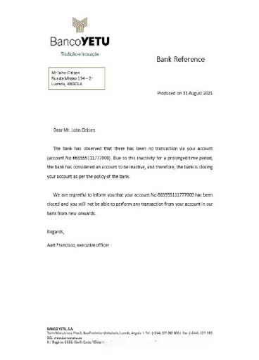 Angola Bancoyetu closure reference download template file