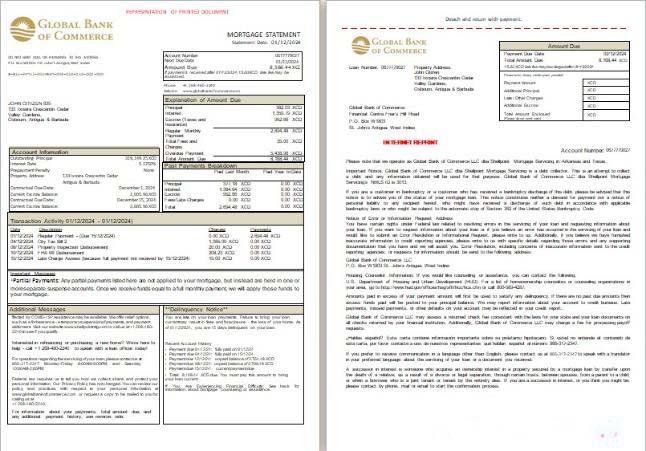 Antigua and Barbuda Global Bank of Commerce bank mortgage statement, 3 pages, 1 2 scr download template file