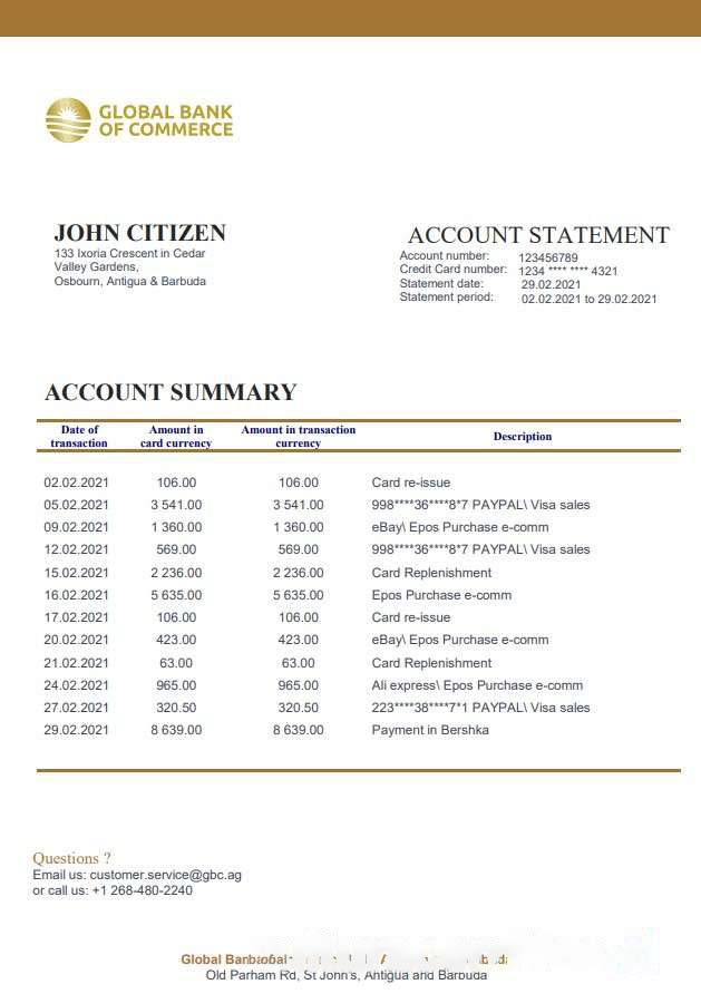 Antigua and Barbuda Global Bank of Commerce bank statement xls download template file