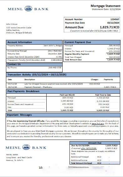 Antigua & Barbuda Meinl Bank mortgage statement scr download template file