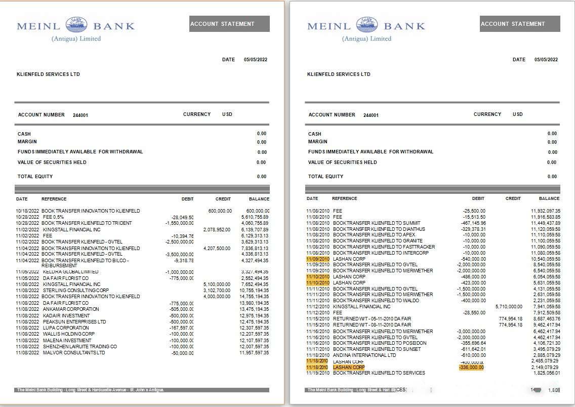 Antigua & Barbuda Meinl Bank statement Word and PDF template, 2 pages download template file