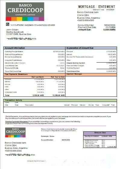Argentina Banco Credicoop bank mortgage statement scr download template file