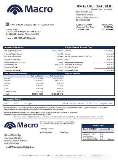 Argentina Banco Macro S.A. bank mortgage statement scr download template file