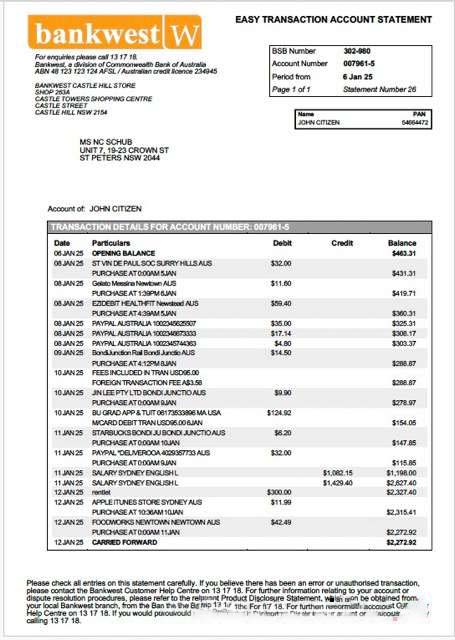 Be the first to review “Australia Bankwest account statement Word and PDF template download template file”