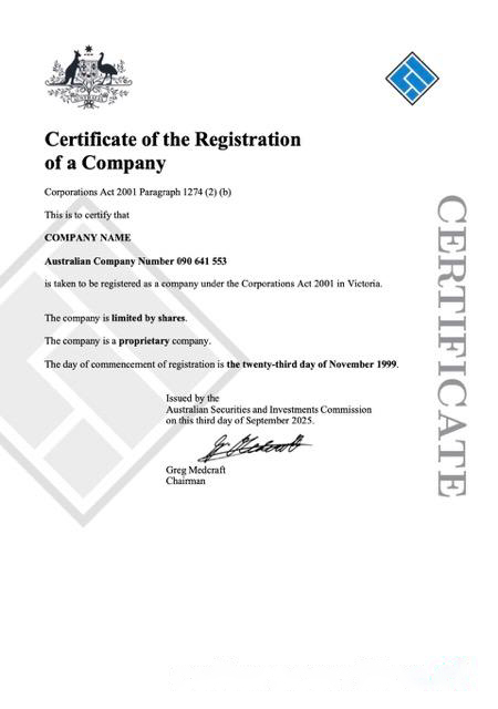 Australia certificate of company registration Word and PDF template download template file