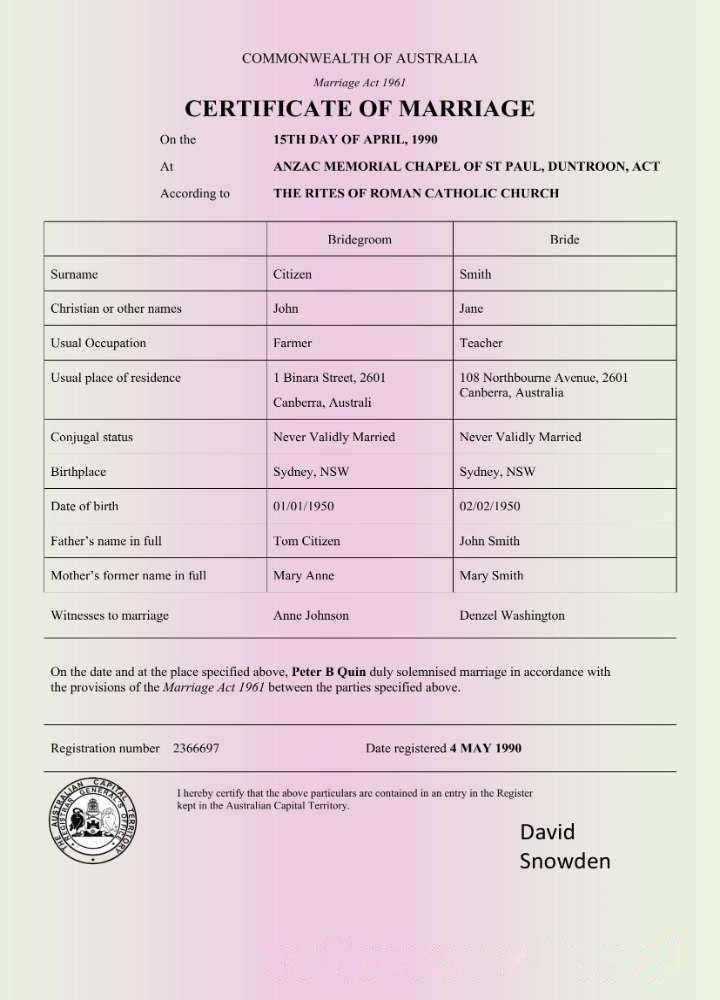 Australia Commonwealth of Australia marriage certificate Word and pdf format download template file