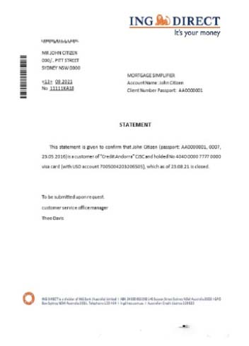 Australia ING direct closure reference download template file