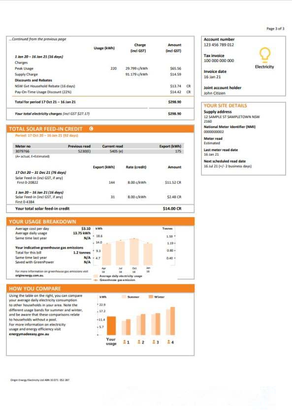 Australia New South Wales (NSW) Origin electricity utility bill template in Word and PDF format 3 download template file