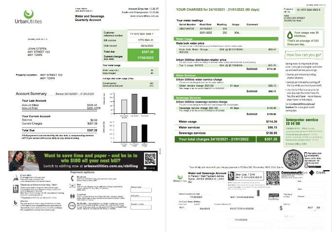 Australia Urban Utilities .doc and .pdf utility bill template download template file