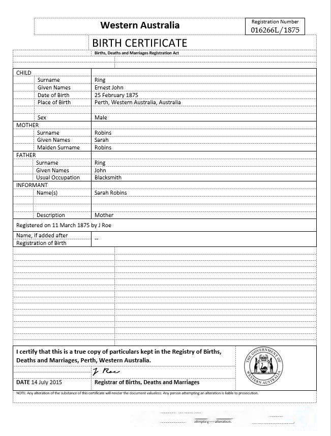Australia Western Australia birth certificate template in Word format, version 2 download template file