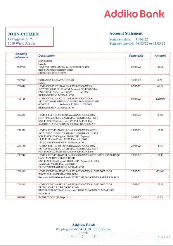 Be the first to review “Austria Addiko bank statement template in Word and PDF format download template file”