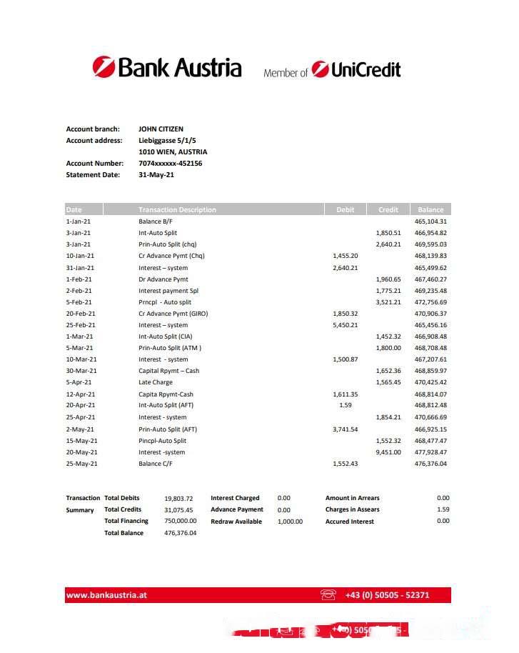 Be the first to review “Austria Bank Austria bank statement easy to fill template in Excel and PDF format download template file”