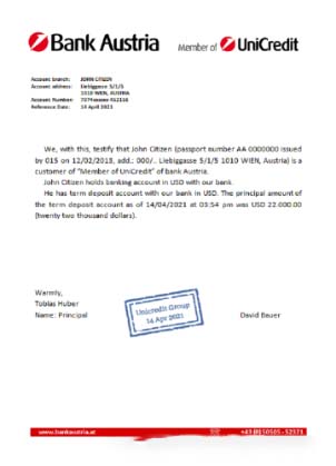 Austria Bank Austria reference download template file
