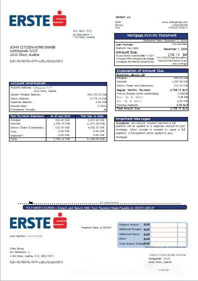 Austria Erste Group bank mortgage statement scr download template file