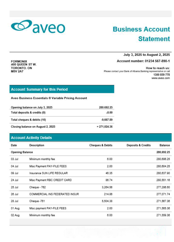 Be the first to review “Aveo business firm account statement Word snd PDF format download template file”