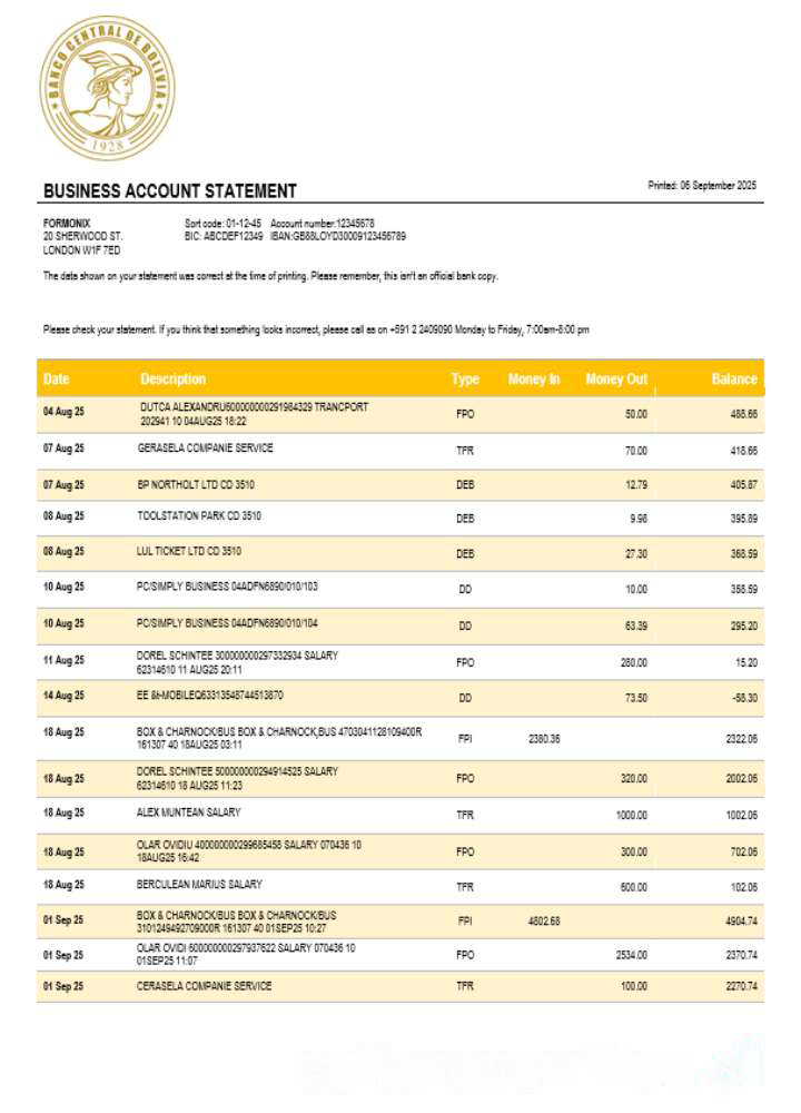 Banco Central de Bolivian enterprise statement Word and PDF format download template file