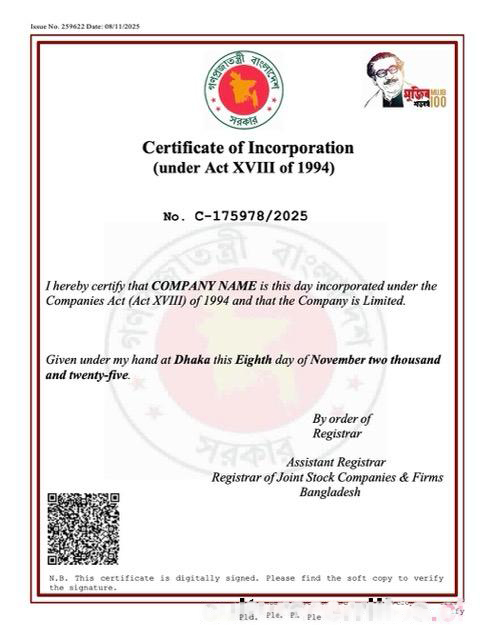 Bangladesh certificate of incorporation Word and PDF template, version 2 download template file