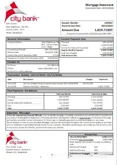Bangladesh City Bank bank mortgage statement scr download template file