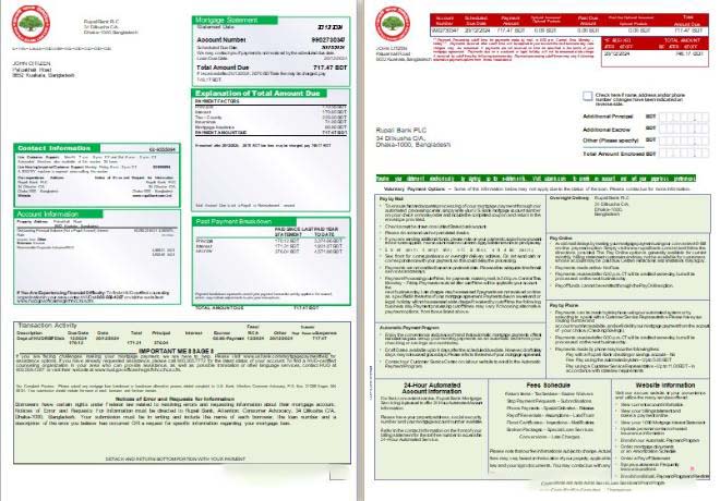 Bangladesh Rupali Bank mortgage statement, 3 pages, 1 2 scr download template file