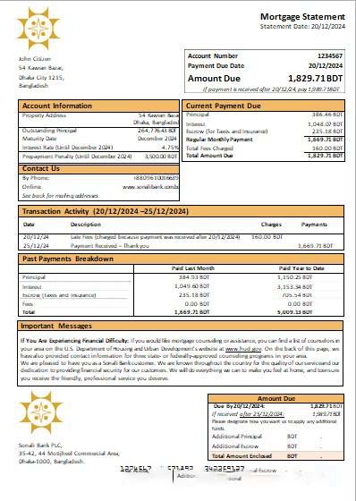 Bangladesh Sonali Bank mortgage statement scr download template file