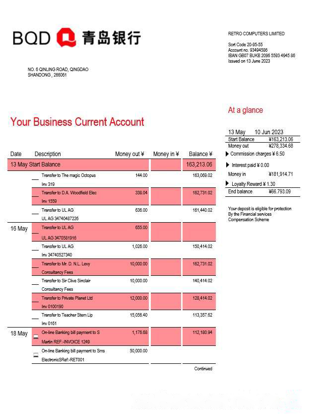 Bank of Qingdao firm statement Word and PDF template download template file