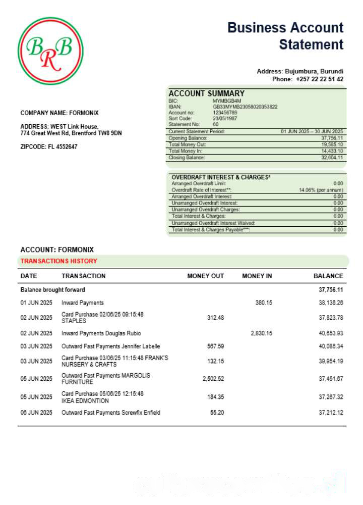 Bank of the Republic of Burundi company statement Word and PDF format download template file