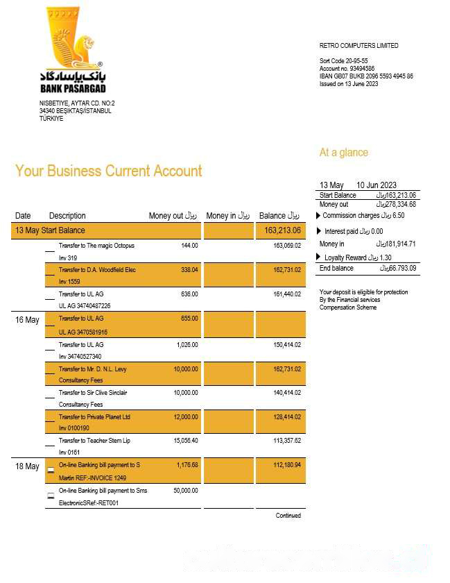 Bank Pasargad business statement Word and PDF template download template file