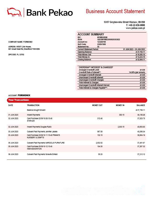 Be the first to review “Bank Pekao S. A company statement Word and PDF template download template file”