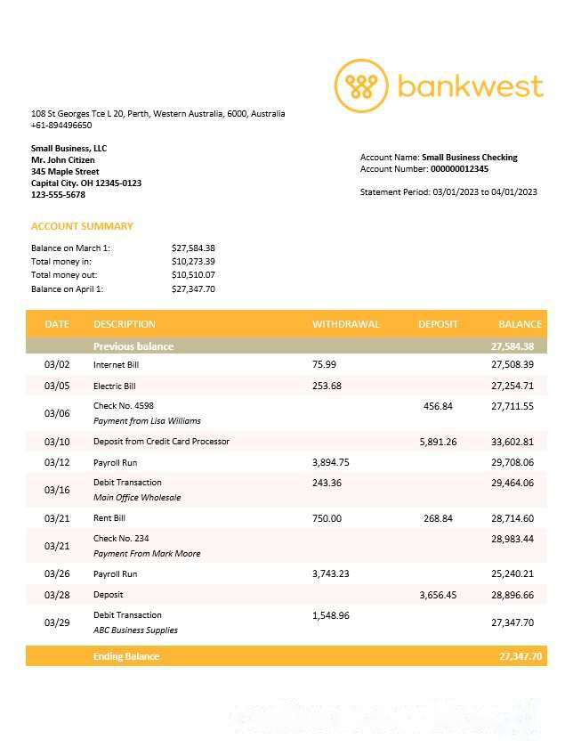 Be the first to review “Bankwest business bank statement Word and PDF template download template file”