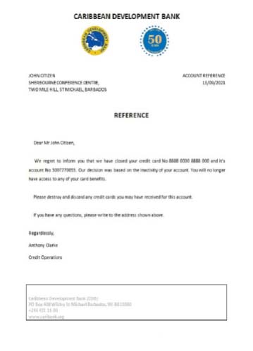 Barbados Caribbean Development Bank closure reference download template file