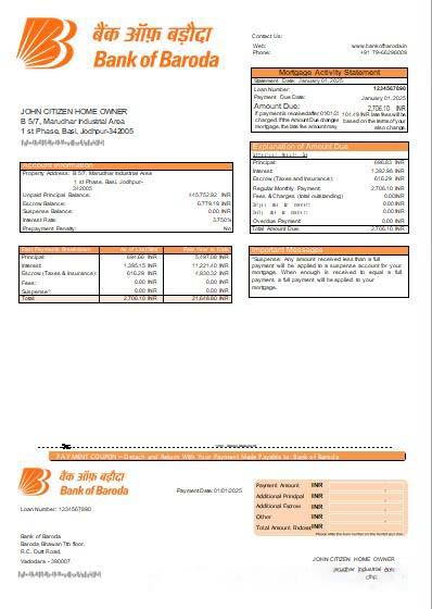 Baroda Bank of Baroda bank mortgage statement scr download template file