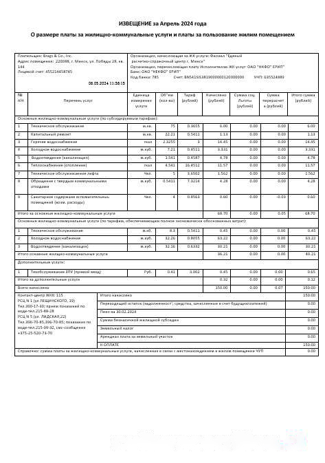 Belarus Zhel Kom business utility bill template in Word and PDF format, fully editable download template file