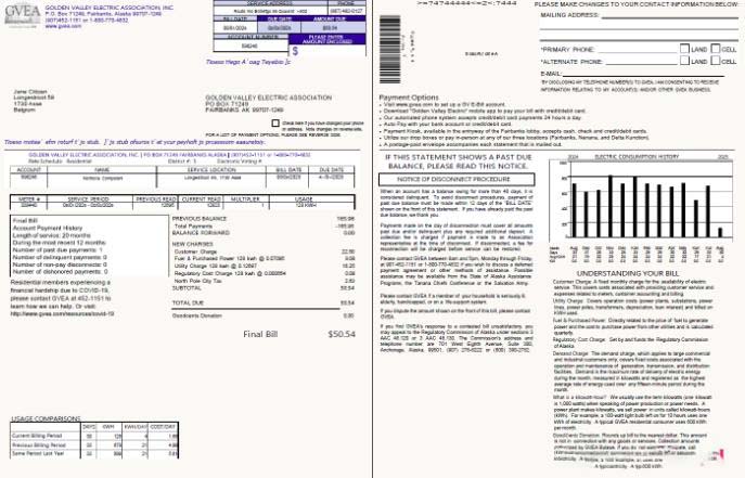 Belgium Golden Valley Electric Association utility bill template in Word and PDF formats, 2 pages download template file