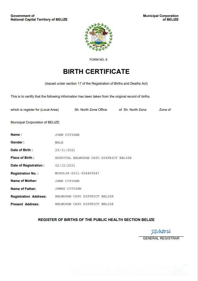 Belize vital record birth certificate Word and PDF template download template file