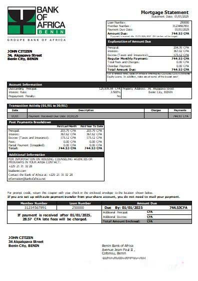 Benin Bank of Africa bank mortgage statement scr download template file