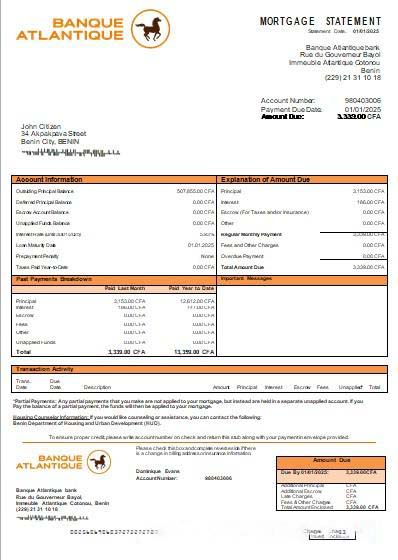 Benin Banque Atlantique bank mortgage statement scr download template file