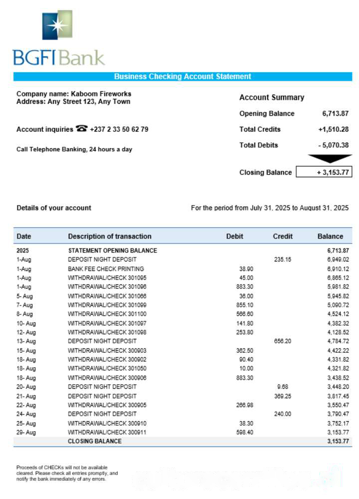 Be the first to review “BGFI business bank statement Word and PDF format download template file”