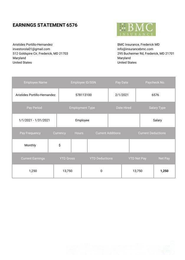 Bluefield Corp. Ltd pay stub Word and PDF template download template file
