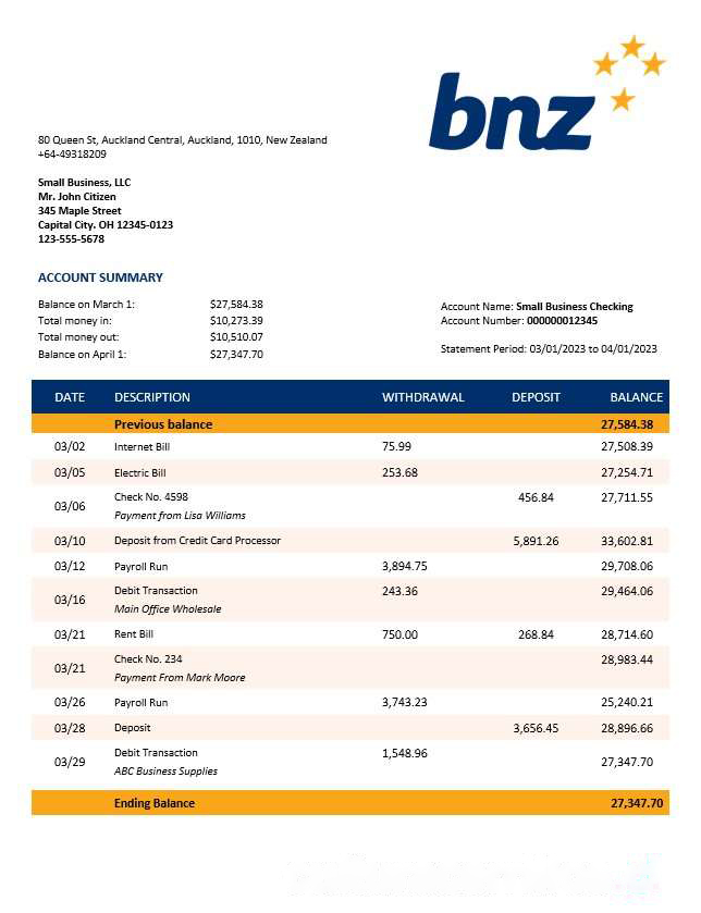 Be the first to review “BNZ Bank organization account statement Word and PDF template download template file”