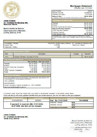 Bolivia Banco Central de Bolivia bank mortgage statement scr download template file