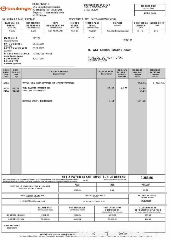 Boulanger payslip (in French language) template in Word and PDF formats.pdf, 1 download template file